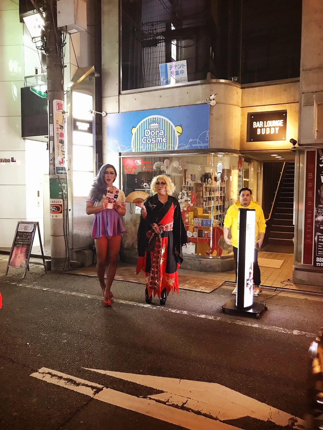 새벽 5시까지 문을 여는 식당입니다. 식당 건너편에선 건장한 언니가 씩씩하게 손짓하네요.