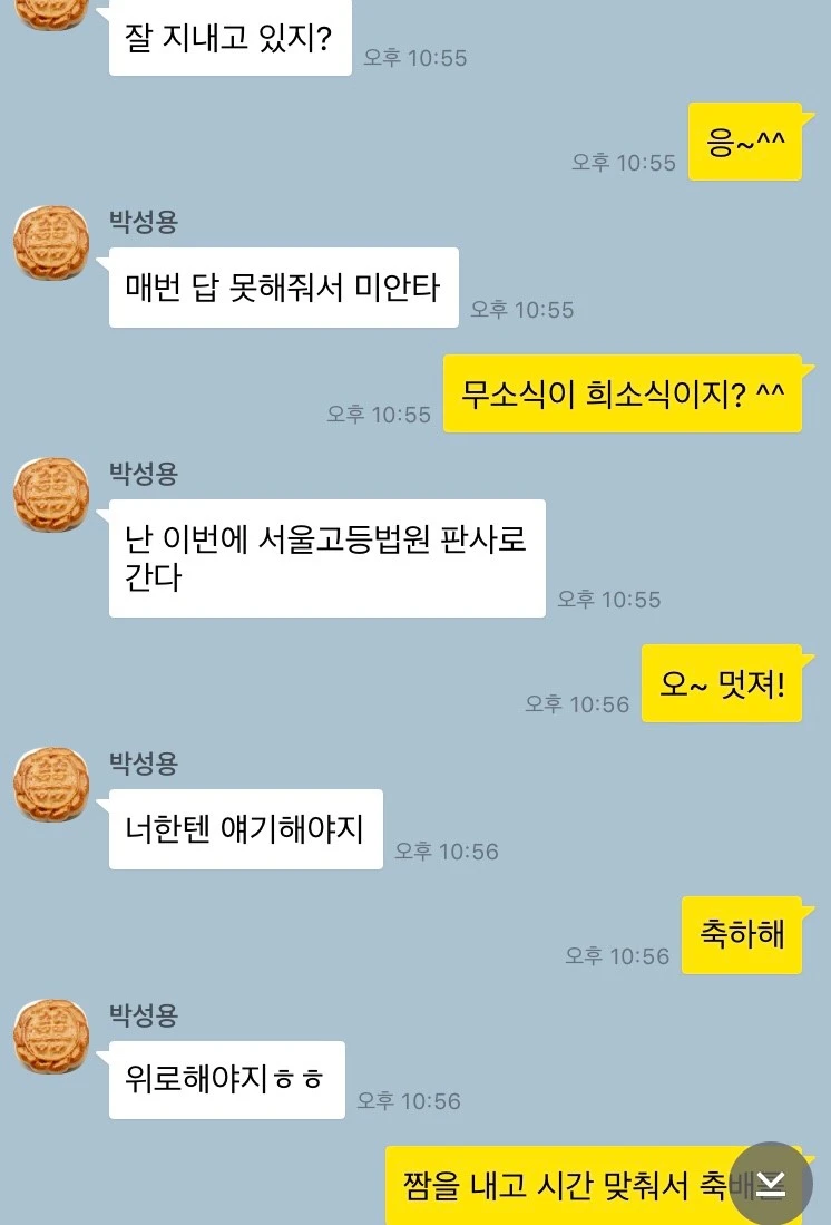 아무쪼록 박 판사의 행보에 기쁜 일 가득하길 염원합니다. 나약하고 억울한 이들을 위해 기꺼이 헌신하리라 믿어 의심치 않습니다. 이 나라 민초들이 그의 판결을 통해 위로받을 수 있길 열망합니다.