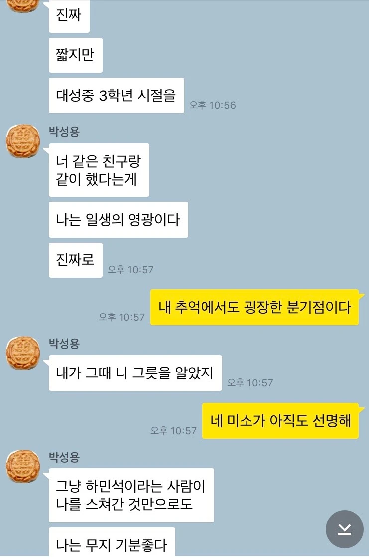 그 학교가 제 모교가 된 공주 한일고입니다. 부모님과 교장 선생님 등 여러 반대에 부딪혀, 녀석은 고교 동문이 되진 못했습니다. 여파가 꽤 컸던 아쉬움을 토로하며, 애정 가득 담아 절 치켜세우네요. ‘그릇 큰 사람’이라니, 제가 건넬 멘트를 돌연 뺏긴 기분입니다.