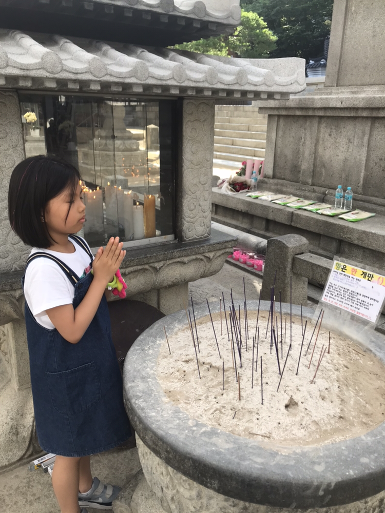 향 사르고 기도하는 아이의 기분은 더 좋습니다.