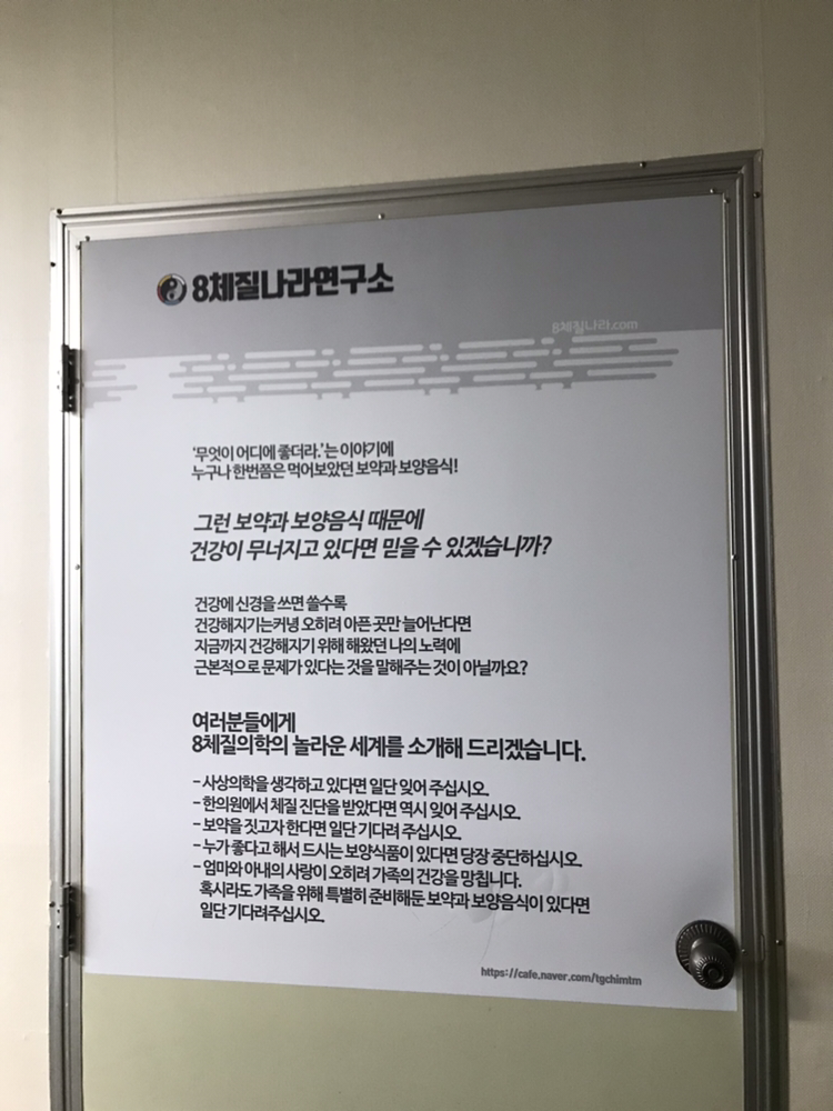 눈부신 햇살의 배웅을 받으며 구암서원 벗어나 해장도 미루고 찾아간 곳은 8체질나라연구소. 외지인 티 내며 길 헤매다 어렵사리 목적지에 당도했습니다. 필담만 나눴던 묵계 이상원 선생님께서 어려운 시간을 흔쾌히 내주셨습니다.