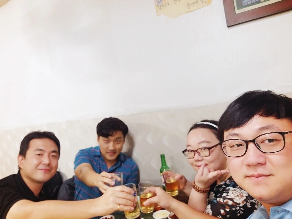 형경의 직장 아래에 박힌 포차에서 2차 파티. 정신줄 놨다 잡았다를 반복하며 노래방 거쳐 숙소인 구암서원에 안착했습니다.