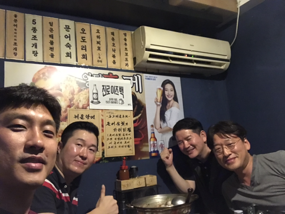 신영미 도제와 헤어져 지하철 2호선에 몸을 실었습니다. 모처럼 홍대 나들이. 테드 도제 만나 함께 사업하는 공주 한일고 선배님을 드디어 뵈었습니다. 김재필 선배님이 잘 아는 맛집에서 해신탕 흡입했네요.