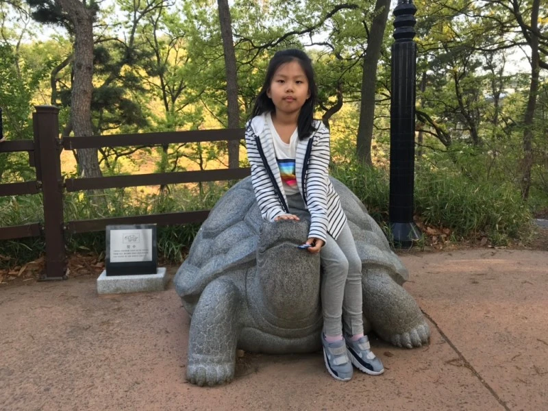 행운을 상징한다는 두꺼비와 의외로 빨리 헤엄친다는 거북이와 칭찬에 춤춘다는 돌고래 등에 올라타는 하조안을 찰칵찰칵 관조합니다.