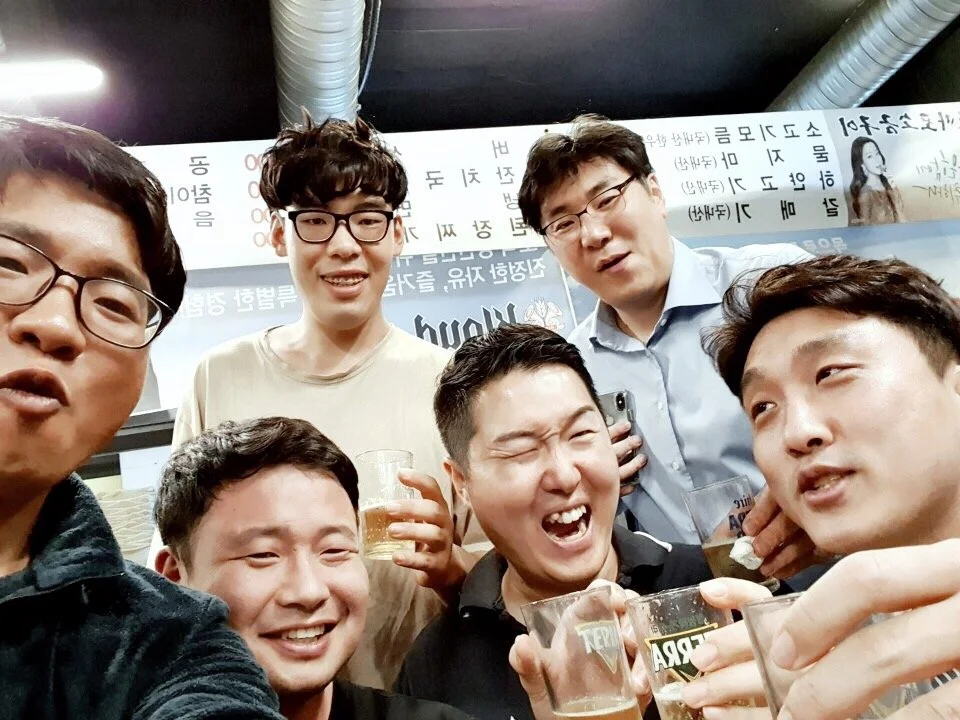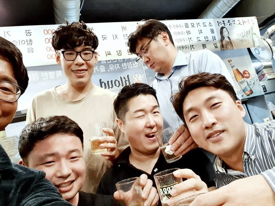 올림픽공원에서 개천문화국민대축제 마치고 뒷고기 뒤풀이. 든든한 귀인들과 테슬라(테라+참이슬)로 축배. 술맛이 예술!