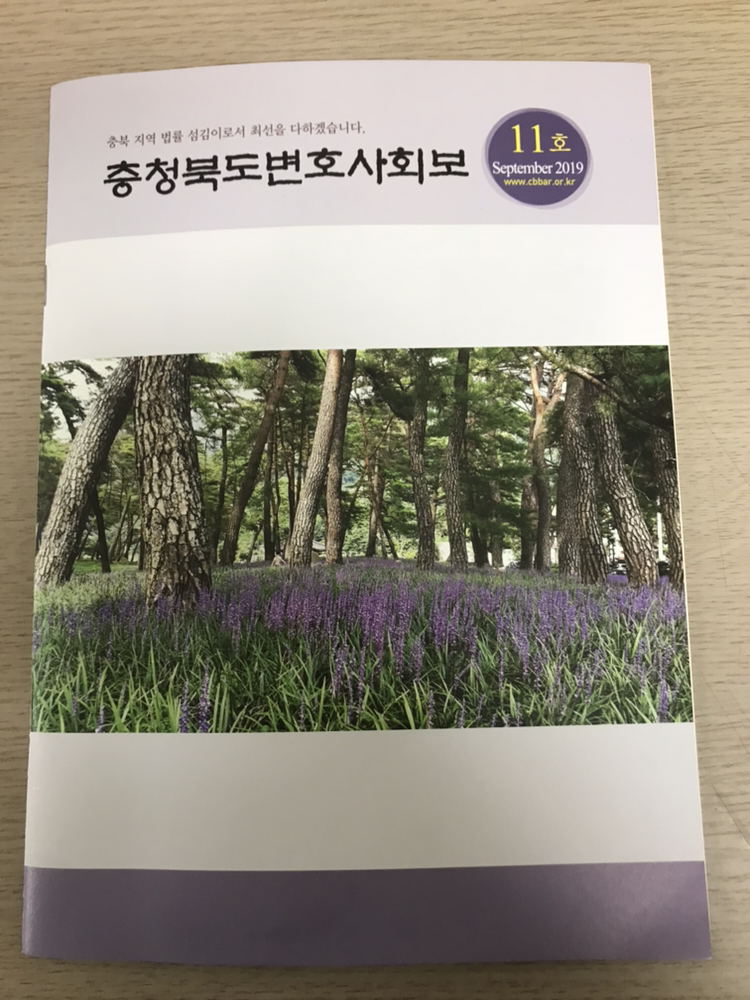 봉투 뜯으니, 충청북도 변호사 회보 11호. 공주 한일고 선배이신 장 변호사님이 연락을 주셔서 칼럼 하나 끼적였더랬죠. 오랜만에 종이에 박힌 제 글과 재회합니다. 회보 편집 후기에 박힌 한 변호사님 말씀에 오롯이 공감합니다. “기고를 수락하는 순간 삶의 질이 떨어진다.”