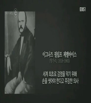 감염을 막기 위해 손을 씻어야 한다고 세계 최초로 주장한 의사, 제멜바이스. 1880년대에 파스퇴르가 질병을 일으키는 세균을 증명하면서 시대를 앞서간 비운의 의사는 복권됩니다. 의학 처치에서 엄격한 무균 예방법을 최초로 도입한 그의 발견은 의학사의 가장 위대한 발견으로 평가받고 있습니다.