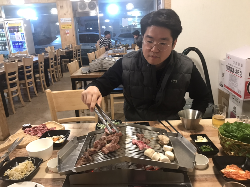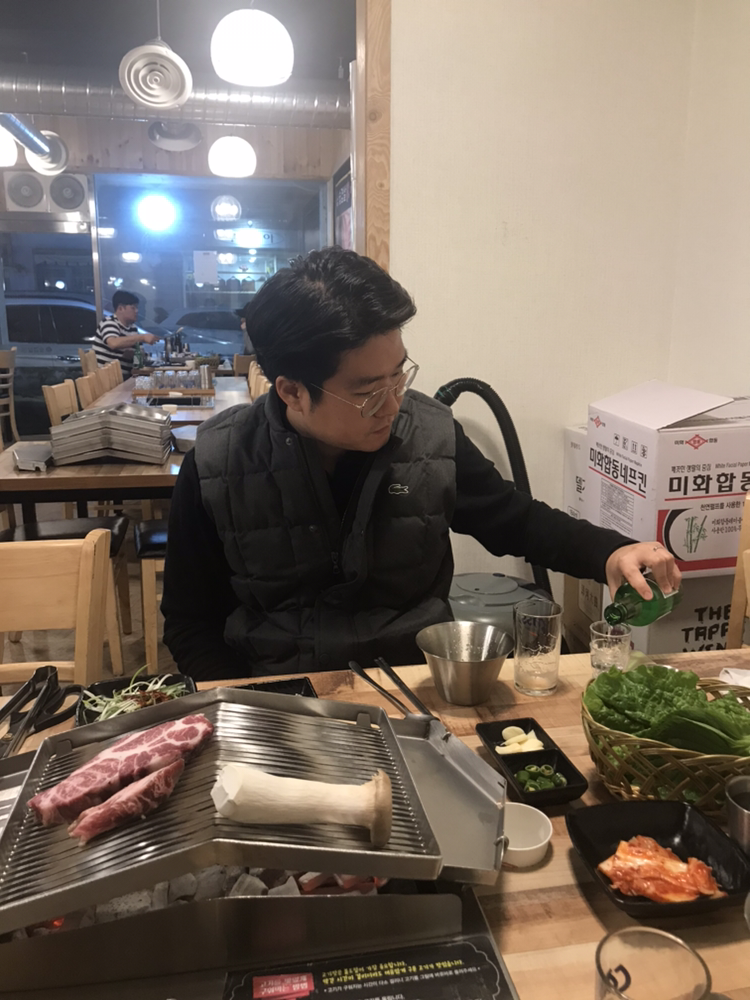 10월 12일 토요일, 태전 토즈에서 우주 변화의 원리 알차게 공부하고, 청주 <숯겹살집> 뒤풀이. 이베리코 꽃목살, 갈매기살, 항정살 등을 씹으며 아끼는 아우랑 테슬라 건배. 몸이 으슬으슬하고 코가 근질근질합니다.
