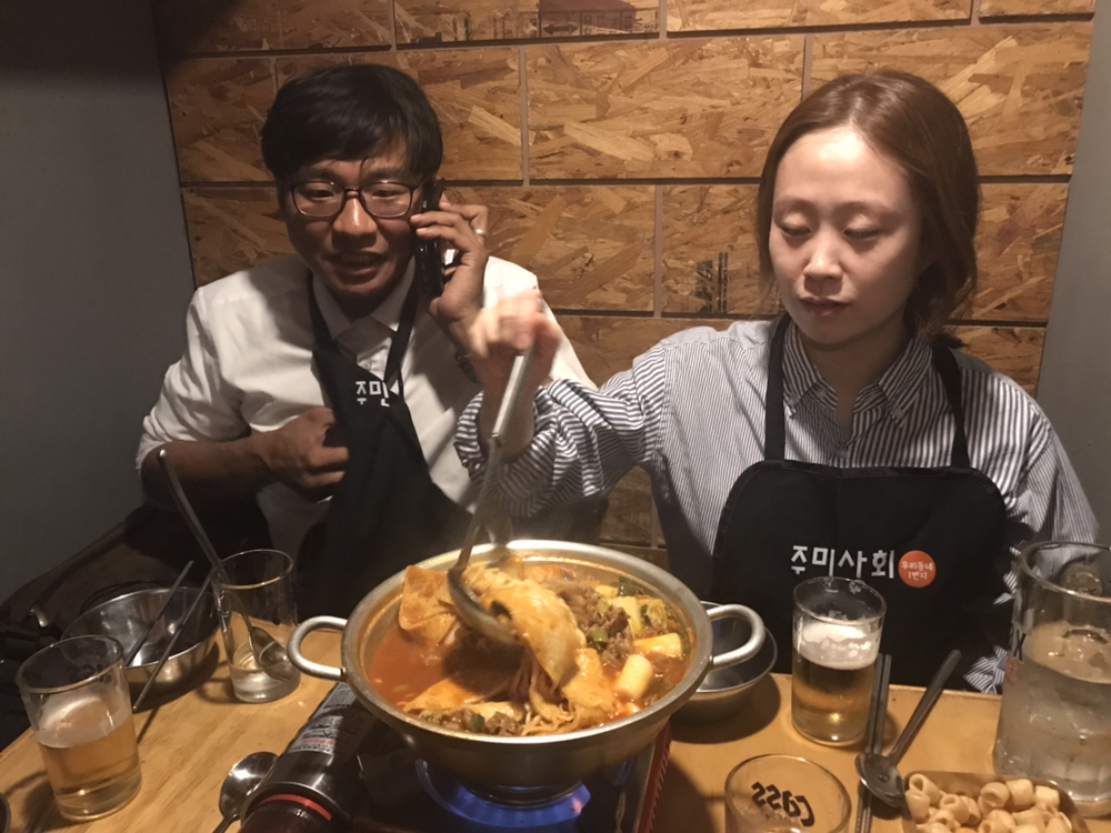 10월 15일 화요일 낮엔 태전에서 촬영. 2편 녹화 완료. 후다닥 청주 건너와서 거사 치르고, 도제들과 뒤풀이. <주민상회>에서 차돌박이 떡볶이 삼키며 꿀소주 건배. 새삼스레 절감합니다.
