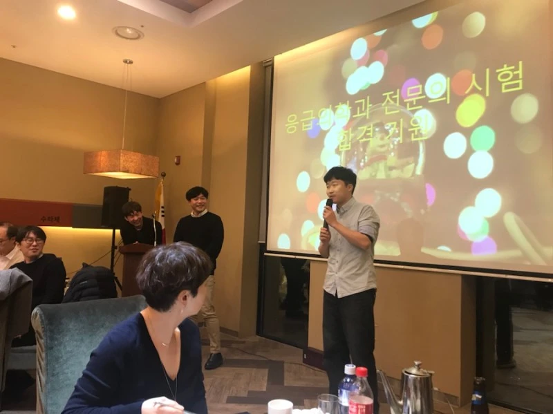 응급의학과 의국 송년회가 한창이네요. 일년 만에 반가운 얼굴들과 재회합니다. 작년에 우수 전공의였던 영민이가 이제 전문의 시험을 앞두고 있네요. 막판에 마무리 잘하고 당당히 전문의 되어서 홀가분하게 축배 들 수 있길 염원합니다.