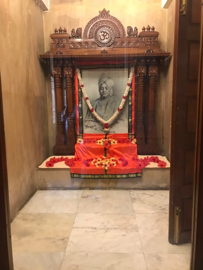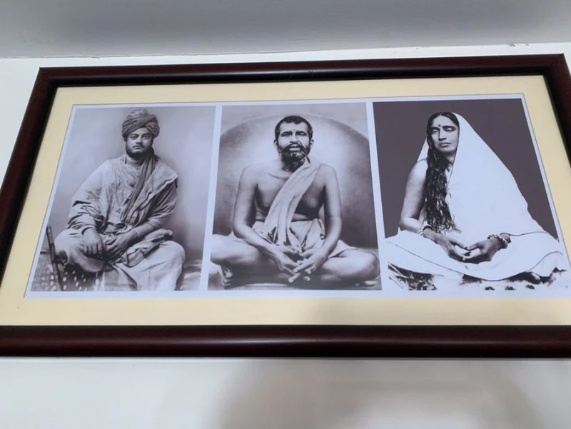 하여, 첸나이 성전에서도 라마크리슈나 성상 우측에 비베카난다 초상화를 모시고 있습니다. 남자들은 비베카난다 초상화 모셔진 좌측에 좌정하여 명상하네요(여인들은 라마크리슈나 아내, 샤르다데비 초상화가 모셔진 성전 우측에 착석합니다).