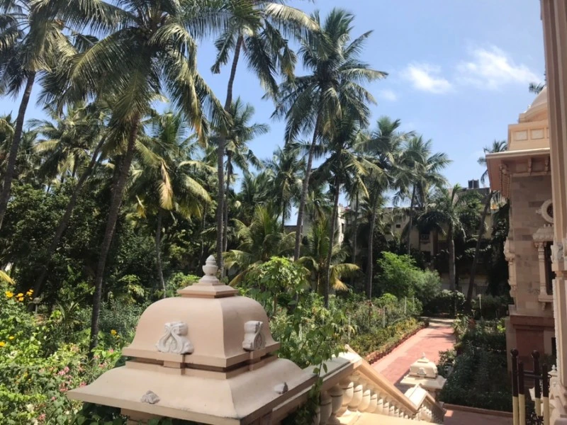 잘 가꾸어진 야자수 정원과 원색의 건물이 새들이 노니는 푸르른 하늘과 어울려 오묘한 삼합을 완성하네요. 신발 벗고 따스한 지열을 맨발로 빨아들이며 성전에 들어갑니다.