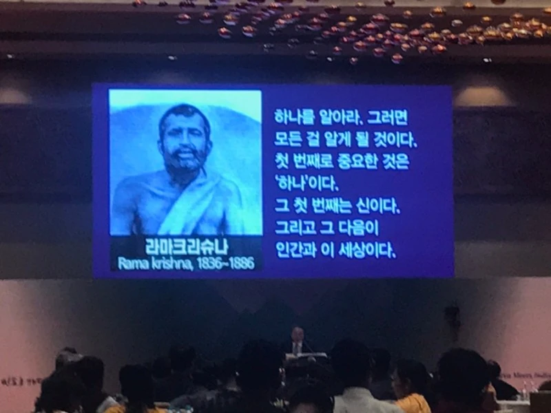 1893년 미국의 시카고 종교 대회에 참석한 그는, 각 종교의 대표들이 자기 종교의 좋은 점만 주장하는 와중에 “모든 종교는 결국 하나의 진리에 도달할 수밖에 없다”라는 간단한 메시지만 발표했답니다.
