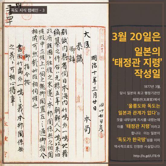 망한민국 정권이 강행하는 국사 국정교과서에선 독도가 어떻게 다뤄질까. 낌새가 별로 좋진 않지만, 간곡히 건의한다. '태정관 지령' 자료는 삽입되어야 한다. 반드시. 기필코!