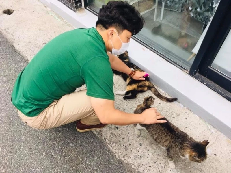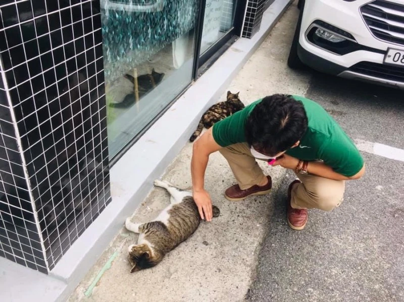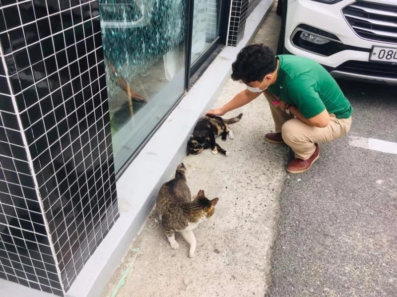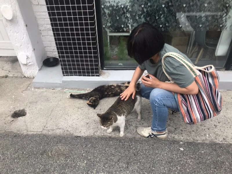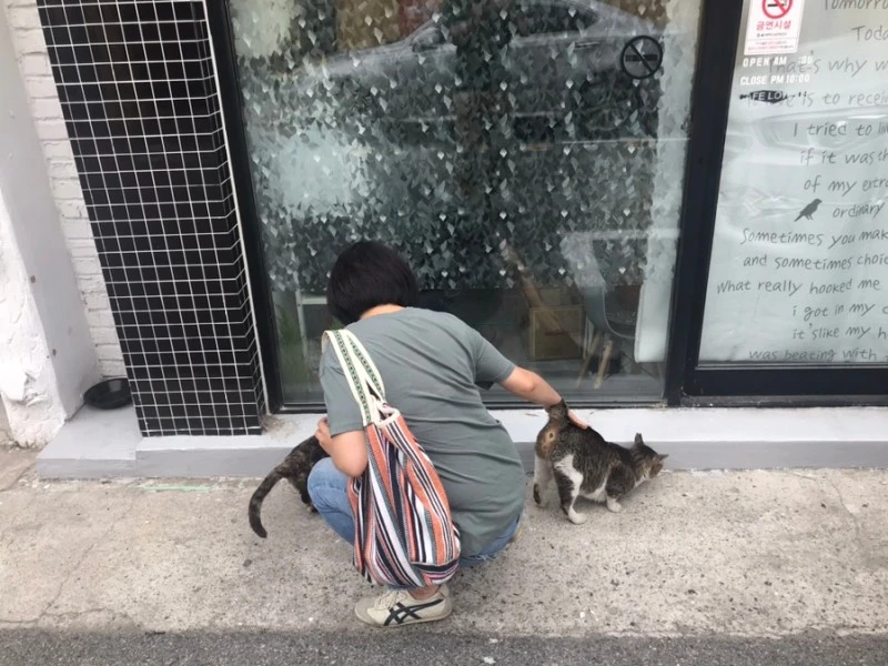 한 마리씩 쓰다듬다 양손으로 궁디팡팡. 사람 손길에 길들여진 아이들에게 옥시토신 뿜는 스킨십 골고루 보시합니다.