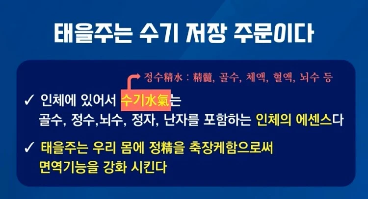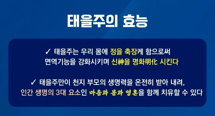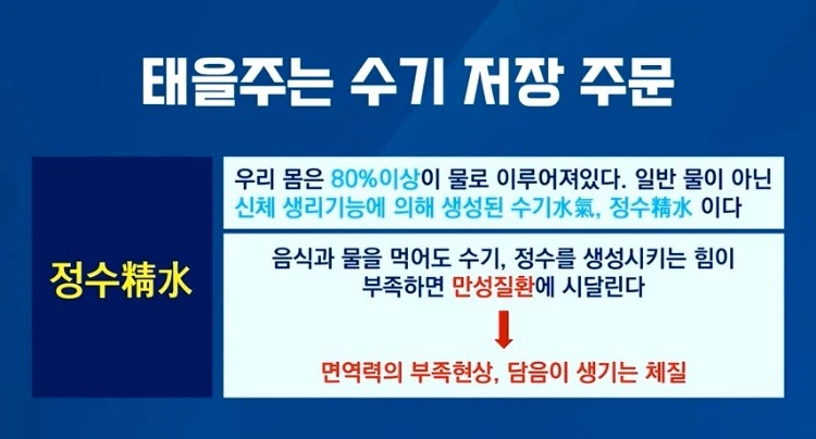 수기水氣가 저장되면서 면역기능이 강화되어 난치병도 치유되죠. 하나뿐인 제 형님은 인슐린 맞는 당뇨병 환자였는데요. 태을주 수행에 일심하여 당뇨병을 말끔히 떨쳐 버렸습니다.