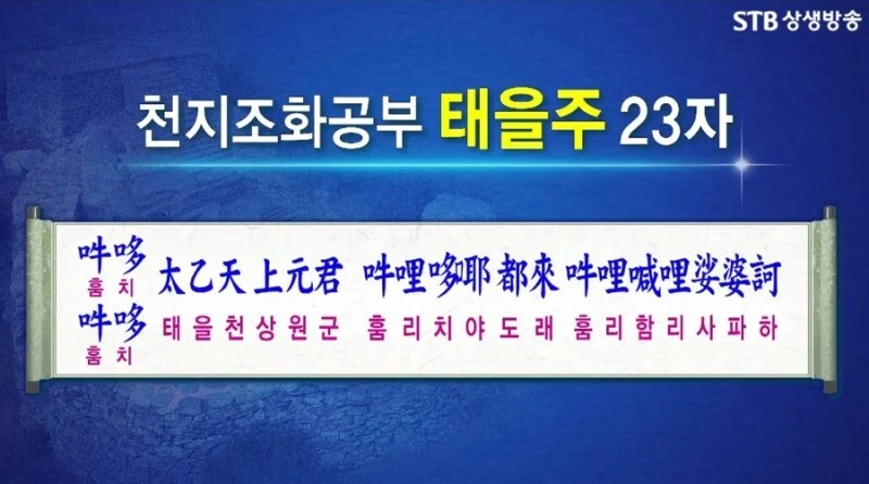 그동안 갈고 닦은 지혜와 체험을 바탕으로 태을주에 대한 도담을 방송에서 도란도란 나눈 적도 있습니다. 백문百聞이 불여일견不如一見, 백견百見이 불여일행不如一行. 진득하고 순일하게 백일 동안 정진하면, 태을주의 조화권능을 황홀하게 체득할 수 있습니다. 배달국倍達國 신시神市를 개창하신 커발환 환웅천황님 가르침 받들어 기도에 매진하여 인간의 참된 본성을 회복했던 웅족처럼.