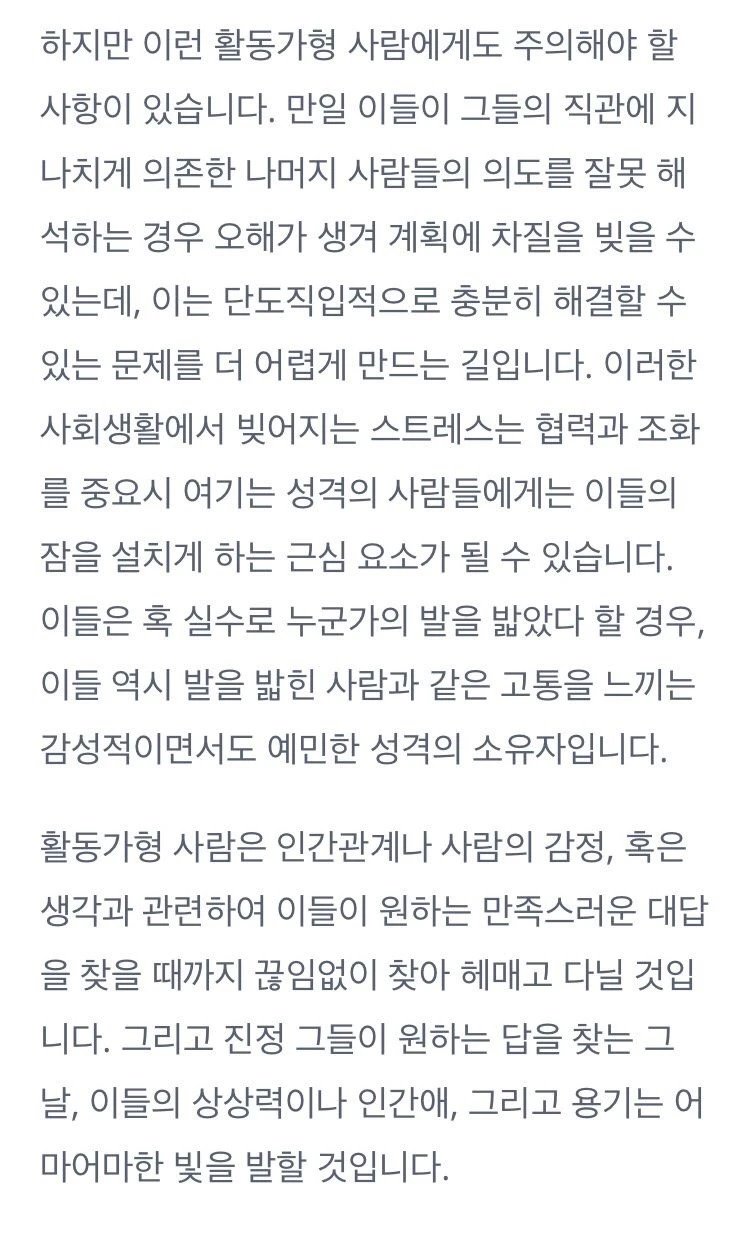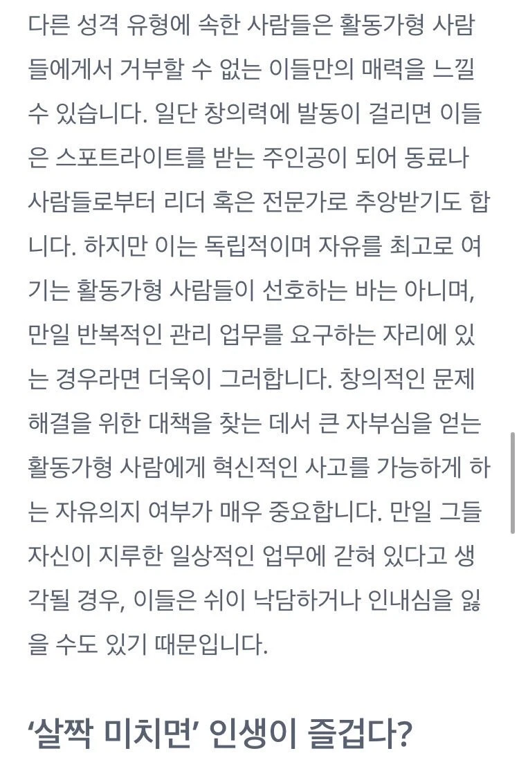 성격유형검사가 확인시켜준 제 캐릭터에도 부합되는 활동이네요. 아이언맨, 랩몬스터처럼 전 재기발랄한 활동가 타입이랍니다.