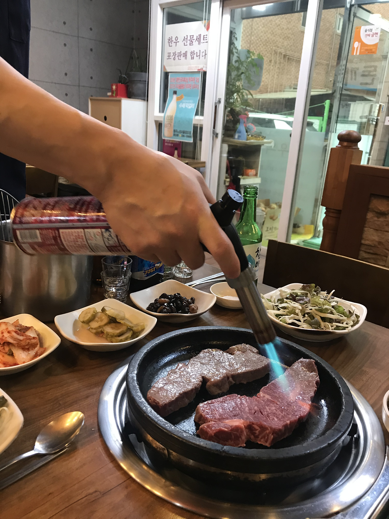 남서울터미널에서 북청주로 내려오니 때마침 비가 그치네요. 청주대 주변에서 잠시 쉬다가 산남동 <불꽃한우>까지 쭉 내달렸습니다.