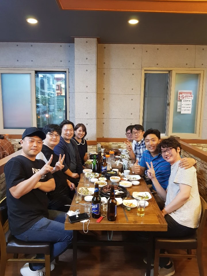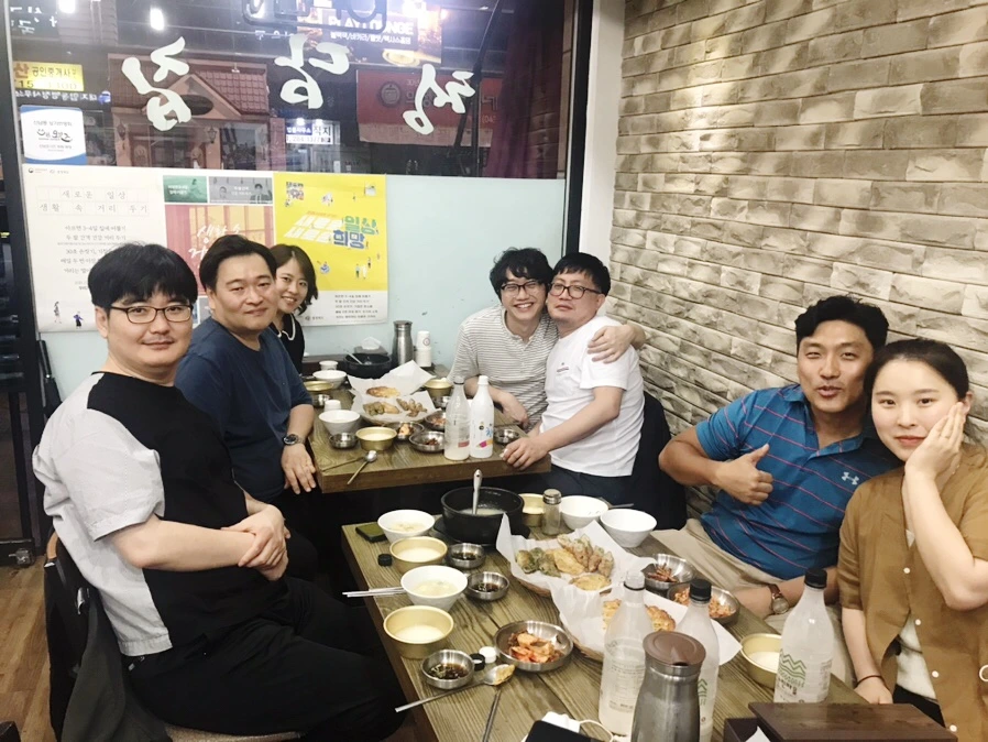 올해 청주의료원으로 건너간 동원이가 식당 입구에서 절 반겨주네요. 창원에서 1년여 일하고 세종 충남대병원에서 7월부터 일하게 될 인용남 선생과 마주앉아 강호에 나간 의국 후배들의 근황을 듣습니다.