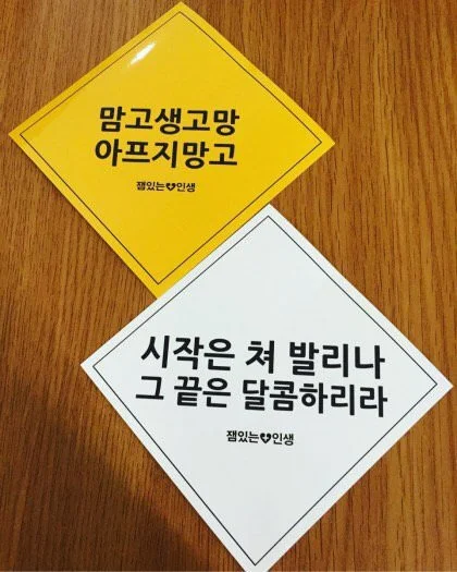 젤리 하나 씹으니 태국 후아힌의 망고밥도 떠오르고, 4년 전에 홍형과 가장이랑 DDP 서울 국제핸드메이드페어 둘러보다 얻은 스티커 문구도 떠올랐습니다. ‘맘고생 고망, 아프지 망고. 시작은 쳐 발리나, 그 끝은 달콤하리라.’