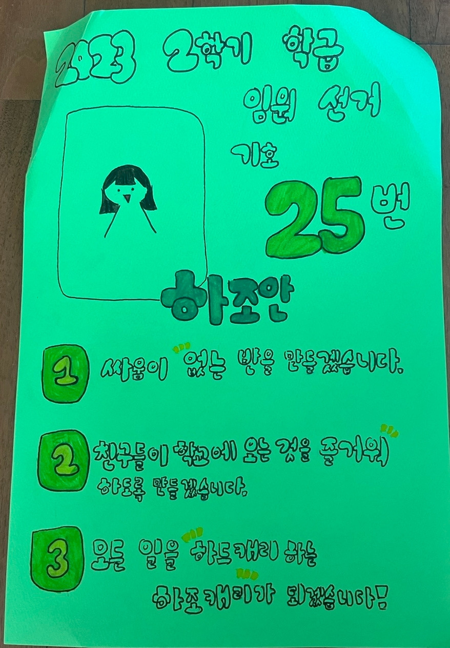올해 2학기 학급 임원 선거에서 ‘모든 일에 하드캐리 하는 하조캐리가 되겠다’는 (아빠딸스러운) 공약을 걸었던 하초딩은 기대 이상의 바른 자세로 수업에 집중하였고, 능동적으로 학습 과정에 동참하였다. ‘좀 긴장이 되더라’는 하조안을 쉬는 시간에 토닥토닥 격려하고, 영어 수업까지 묵묵히 참관한 뒤, 하조안의 모교를 유유히 빠져나왔다.