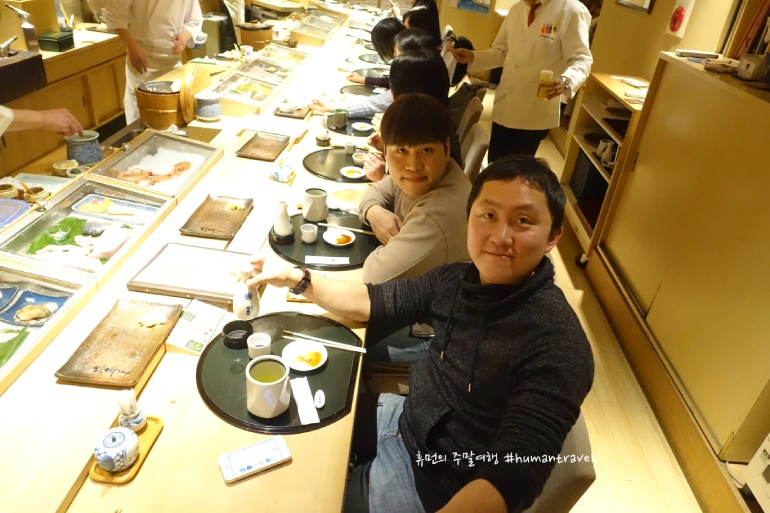 주문한 한 점, 한 점의 초밥(스시, 寿司)이 사라지는 동안 술 잔은 몇 잔이 사라지고 있는지 모르겠다.