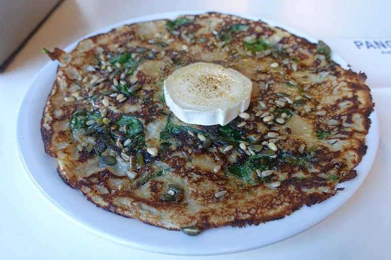 Goat Cheese를 얹어주는 고급(?) 팬케이크 느낌이 물씬 풍겼지만, 현실은 우리나라 ' 빈대떡 ' 의 느낌과 별반 차이가 없었다.