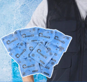 다음은 얼음 조끼다. 매쉬 소재의 조끼 안쪽에 주머니가 4군데 있다. 천천히 녹는 냉매가 들어간 얼음을 네 군데 주머니에 채워 넣고 착용하는 조끼다. 이 조끼를 입으면 당장은 시원하다. 한 20분 정도 시원하지만 일을 하다 보면 조끼 안쪽에 습기가 차게 된다. 땀과 습기가 힘을 합쳐서 몸통을 공격하면 꿉꿉함이 더해진다. 그러니 얼음 조끼의 효과는 대략 30분 정도다.