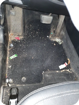 다음은 내부 세차를 한지 오래된 차를 탑승할 때 진행되는 상황이다.