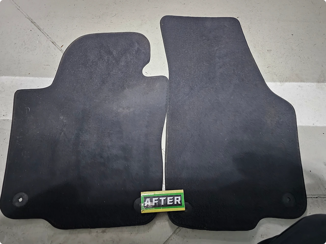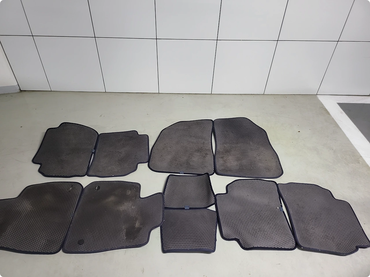 내부세차를 시작할 때 제일 먼저 하는 일은 바닥매트를 밖으로 옮기는 것이다. 한 곳에 모은 바닥매트는 청소기로 먼지를 제거한다. 먼지를 털어낸 바닥매트에는 아직 찌든 때와 알 수 없는 음료의 얼룩이 남아있다. 다시 고온고압(180도, 10 바)의 스팀을 분사하여 세척한다. 바닥 매트를 자주 청소하다 보니 내 나름대로 바닥매트의 순위가 매겨졌다.