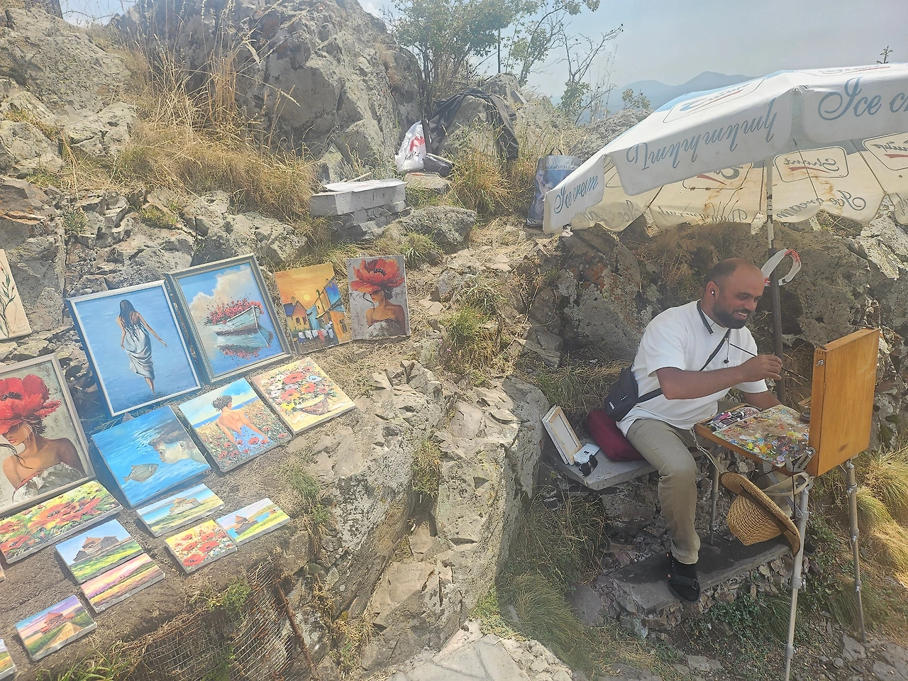 내려오는 길, 한쪽 모퉁이에서 붓을 든