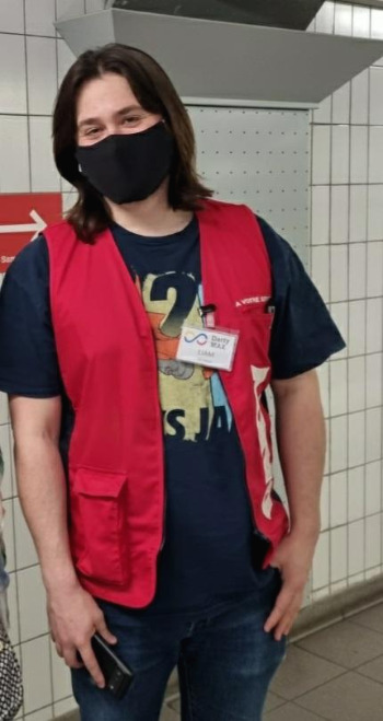 인증샷을 남기고 싶다고 하니 흔쾌히 포즈를 취해준다. 자기는 상품을 판매하는 사람이라면서 이름표를 보여주면서 이름도 알려준다.
