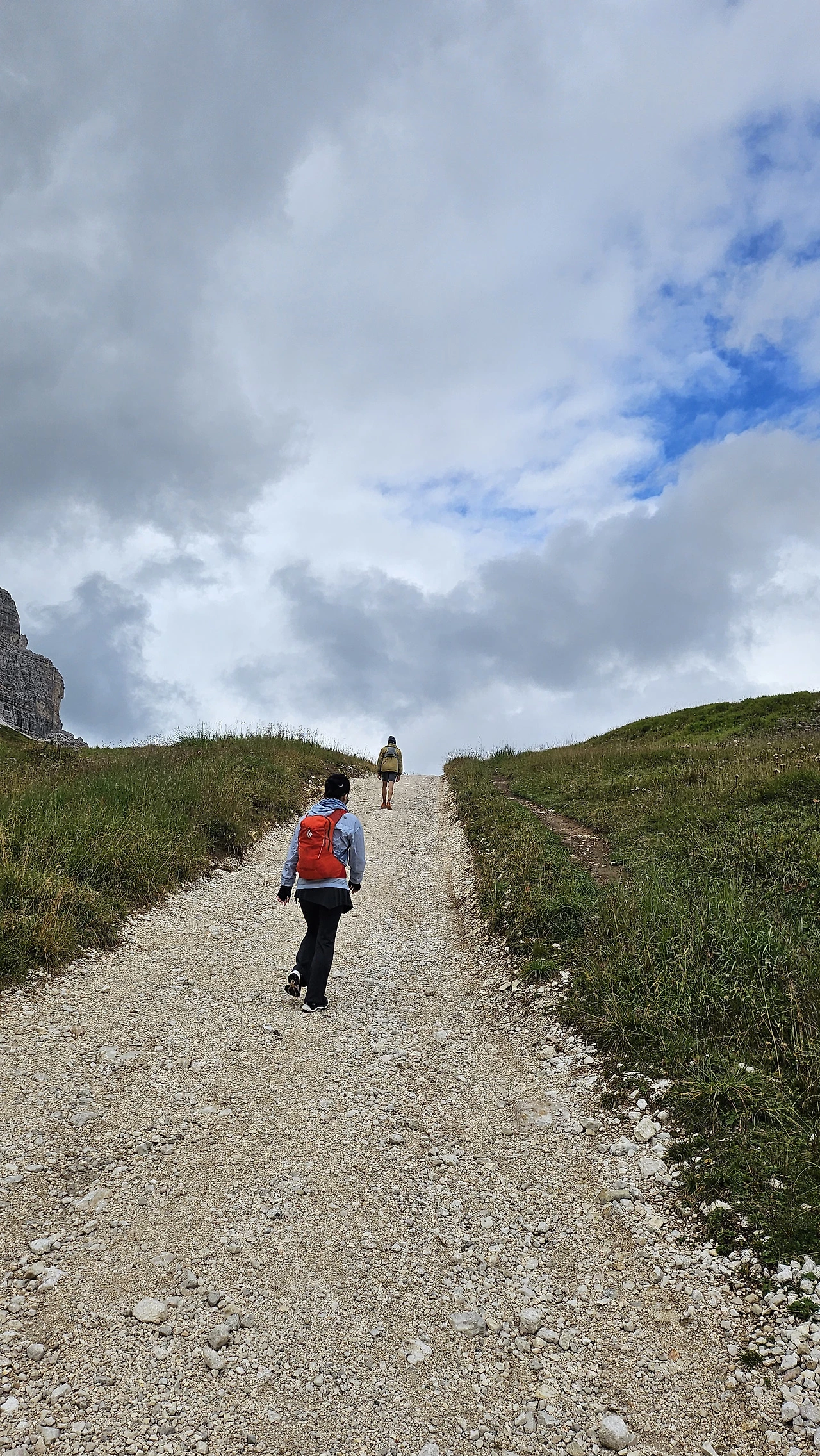 아침 햇살은 돌로미티의 바위를 황금빛으로 물들이며 발걸음을 깨웠다.