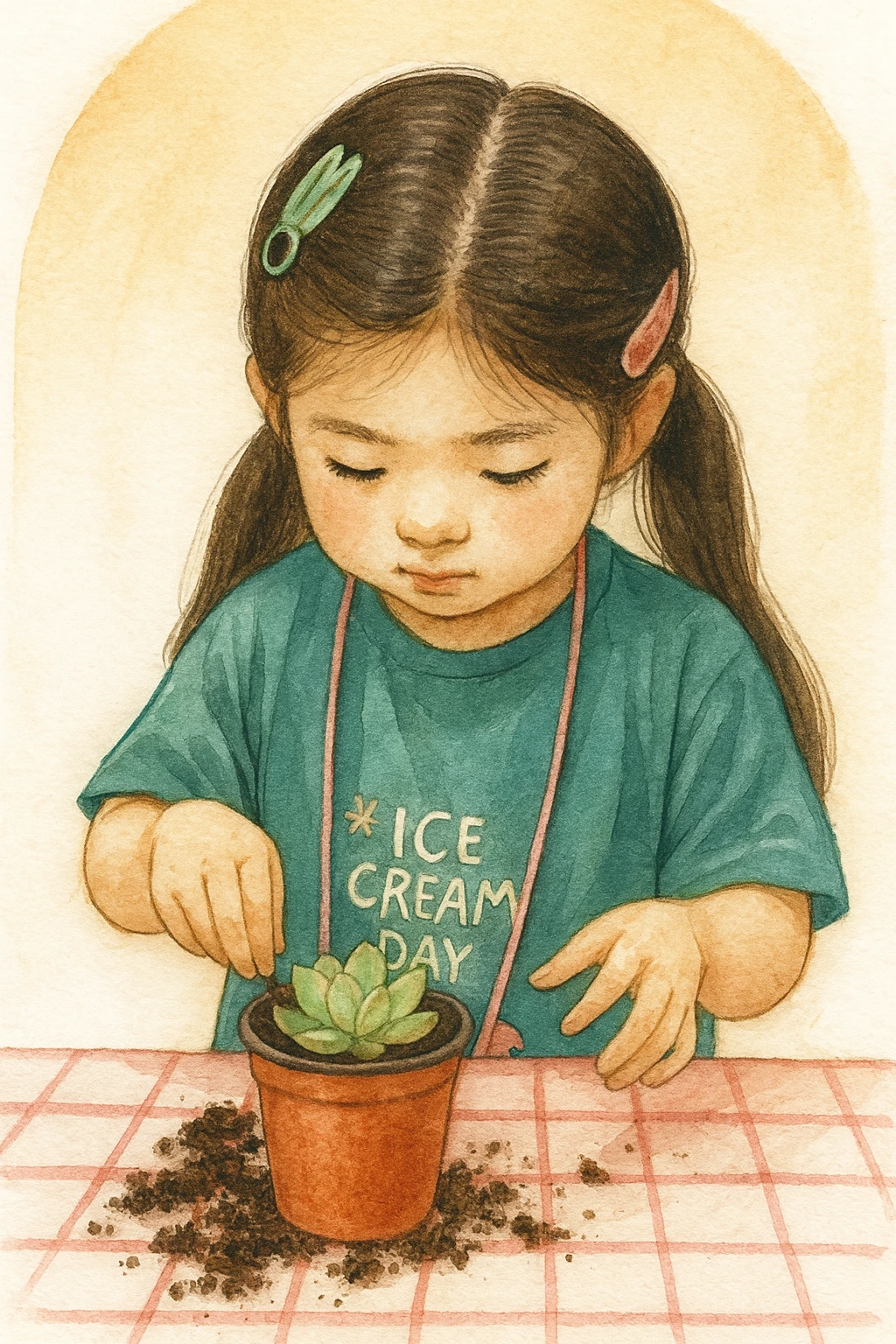 작은 화분에 다육이를 심으며 아이들은
