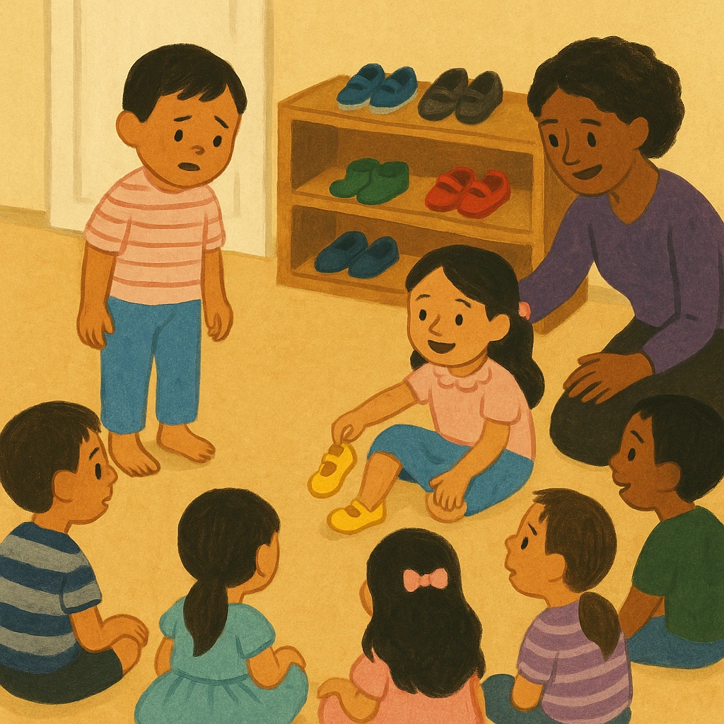 “선생님, 제 신발 한 짝이 없어요!”