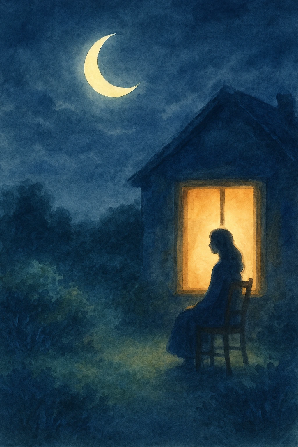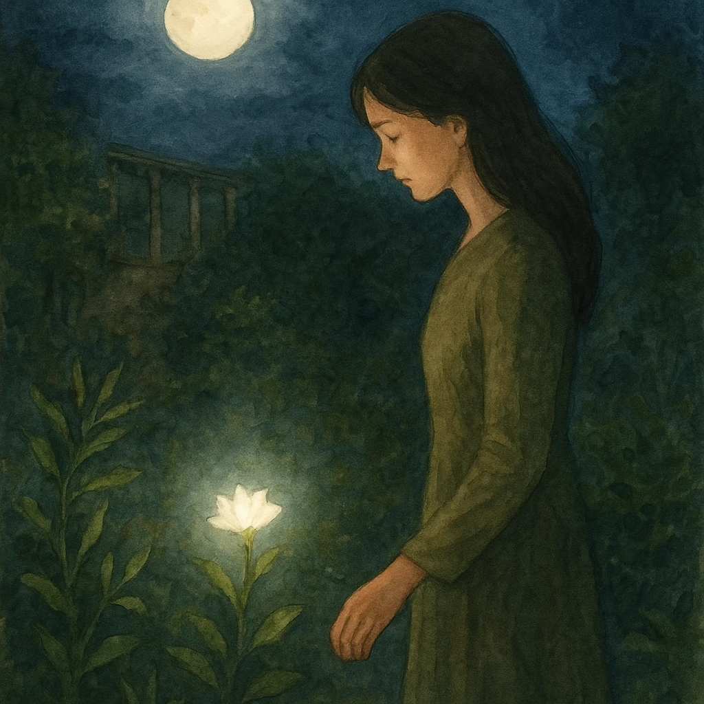 그녀는 매일 밤 달빛 정원에 앉았다.