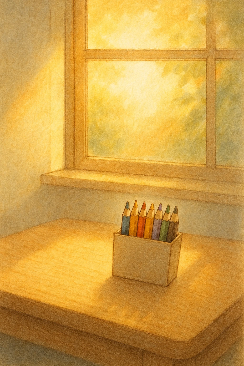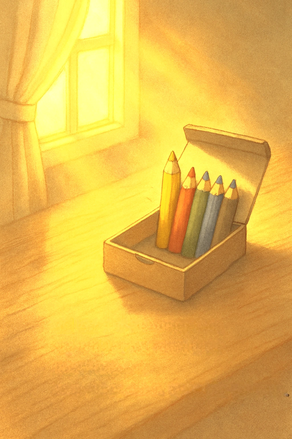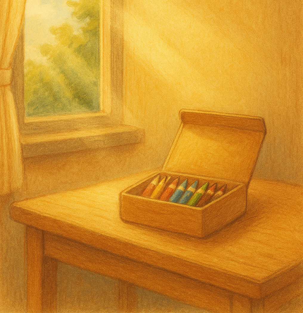 방 안에 놓여 있던 색연필 한 상자가
