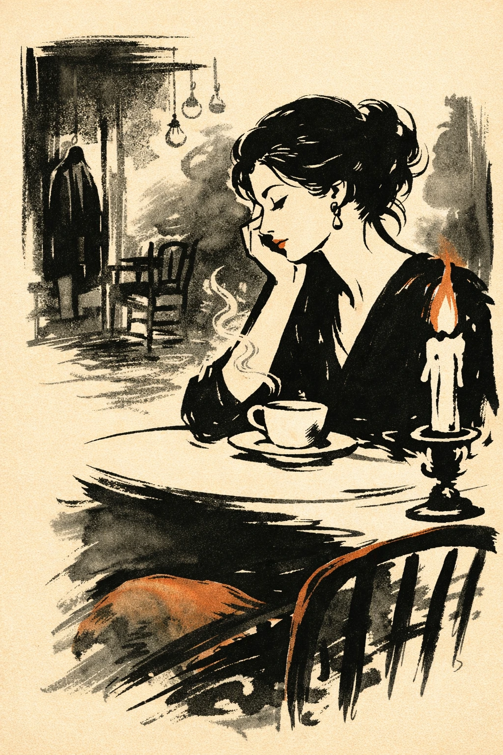 아내들은 저녁 식탁에 혼자 앉아 있었고,