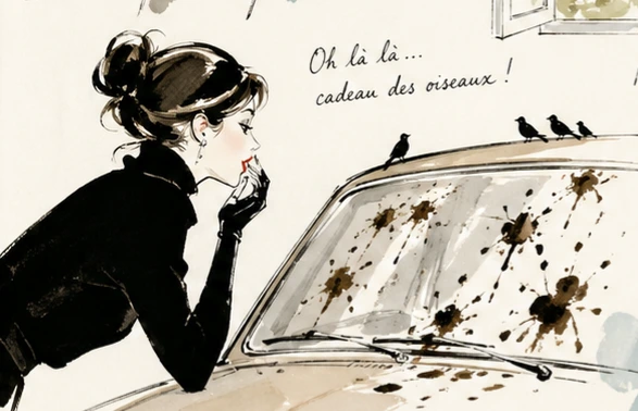 앞유리 가득 새들의 흔적이 남아 있었다.