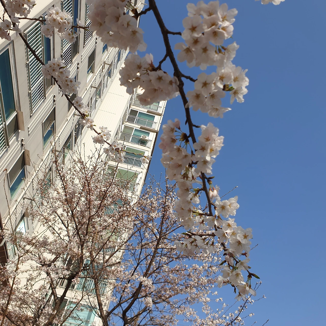 출근길에 활짝 핀 벚꽃 도로를 질주하면서 기분 좋은 아침을 맞이한다.