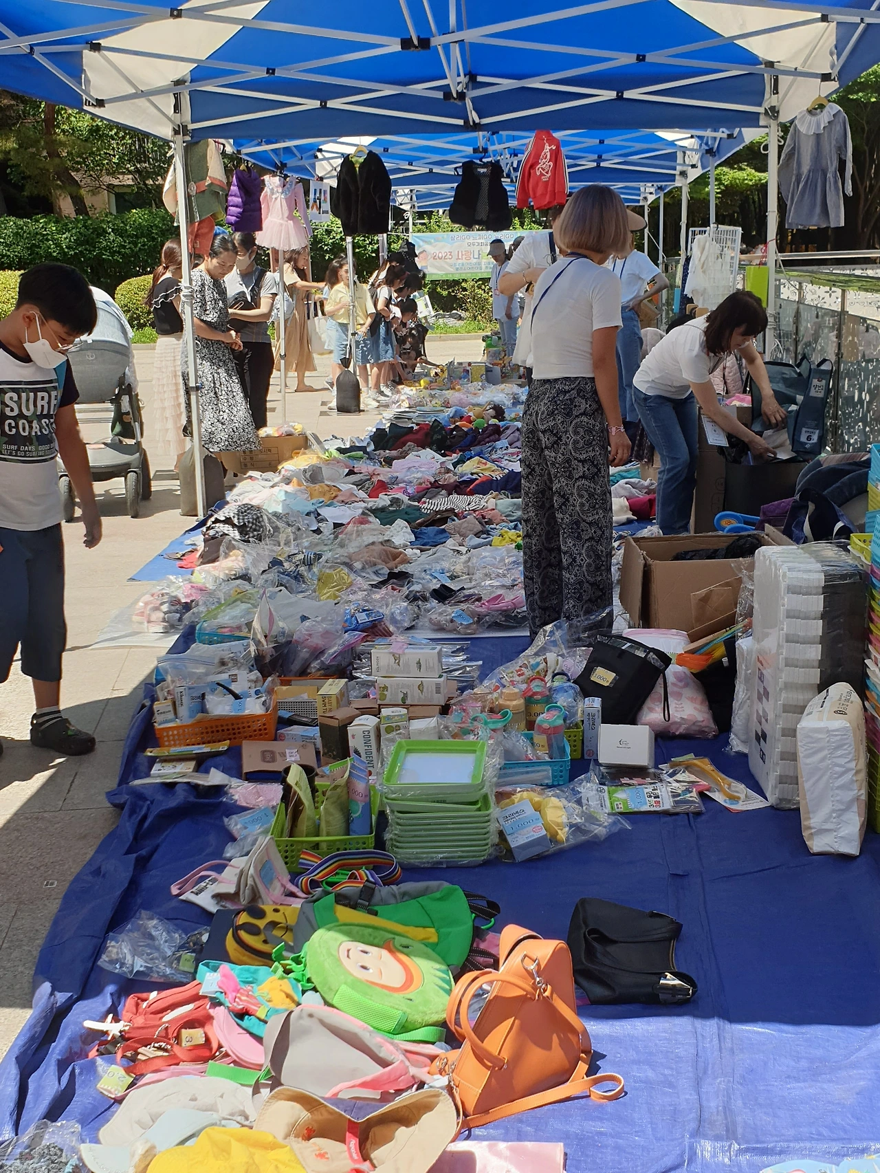 다음날 새벽부터 천막을 치고, 돗자리를 깔아 물건을 세팅하고. 바자회를 시작할 수 있게 만반의 준비를 하였다.
