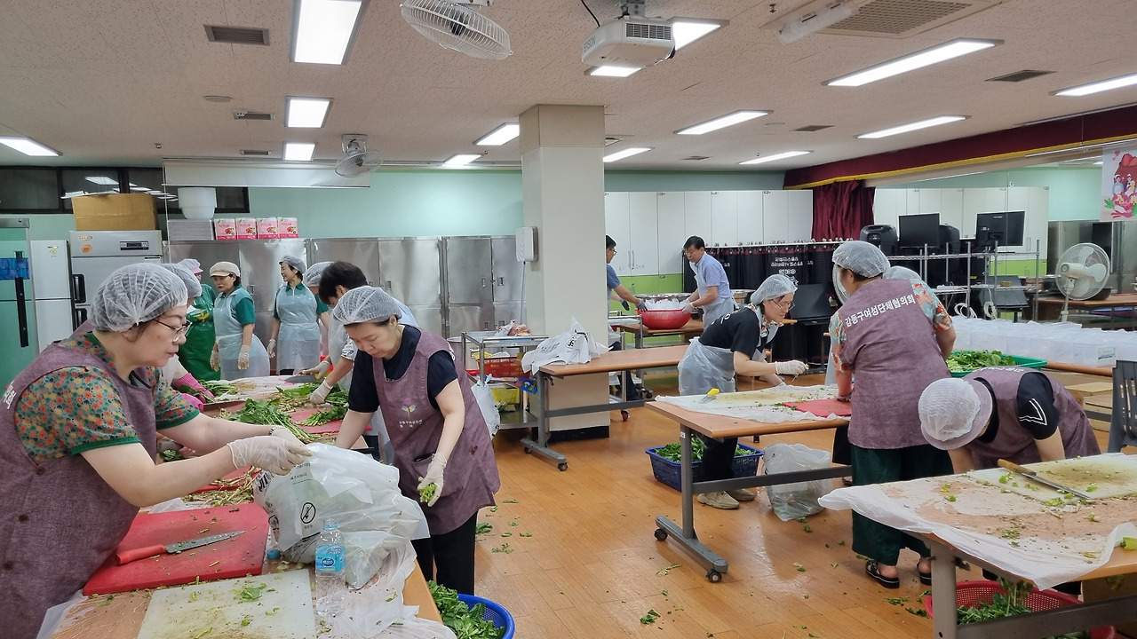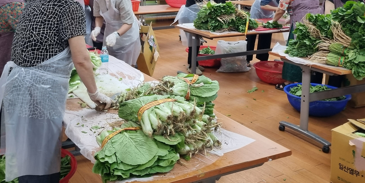 밥맛을 잃지 않고 시원하게 한여름을 날 수 있도록 여름김치를 지원하고자 이렇게 김치 만드는 행사를 하는 것이다.