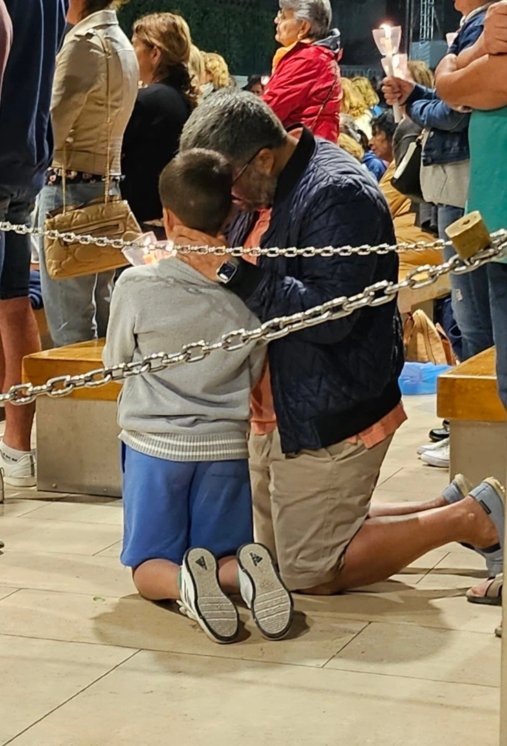 촛불 미사 중 아들과 함께 미사 드리는 모습