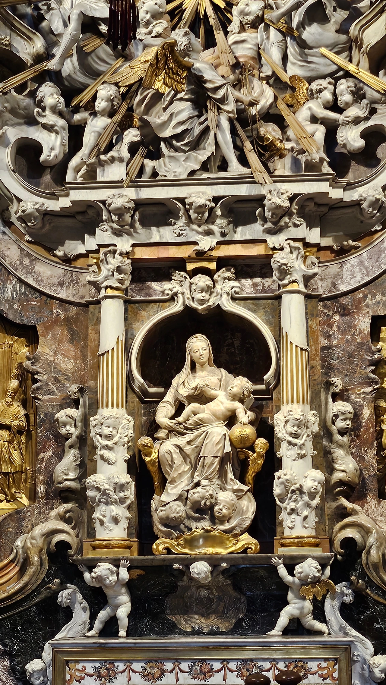 최후의 만찬 조각상 아래에는 4명의 대천사가 그려져 있고, 그 밑에는 성모 마리아가 조각돼 있었다.