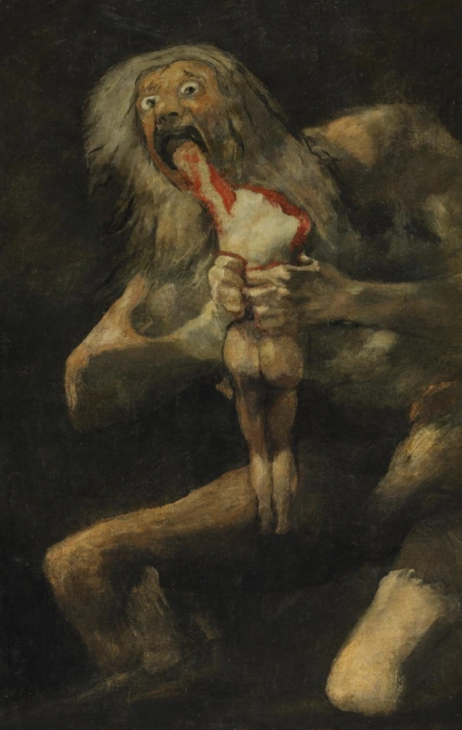 병과 죽음에 대한 두려움을 크로노스 신을 통해서 엽기적이고 거칠게 색감을 넣어 그렸을 것이라고 하였다.