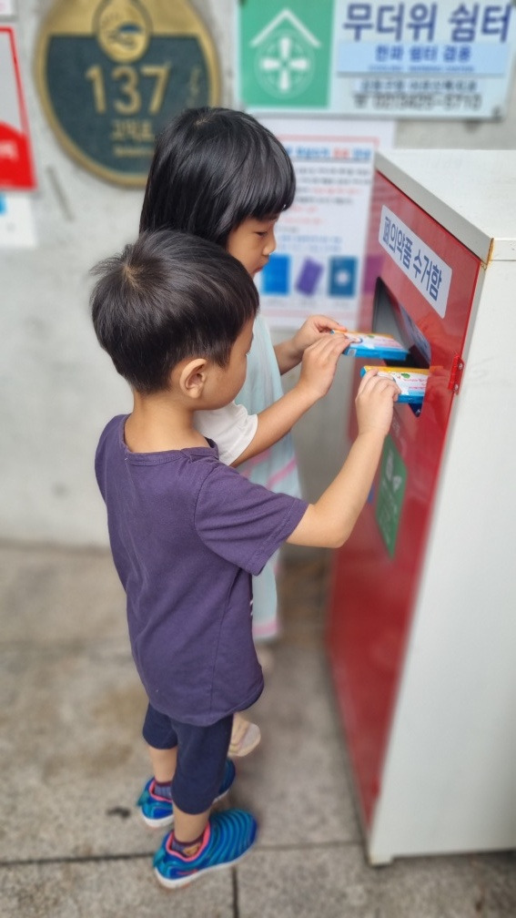 폐의약품과 폐건전지를 수집하여 한 곳에 모아서 주민센터에 가져다주기도 한다.