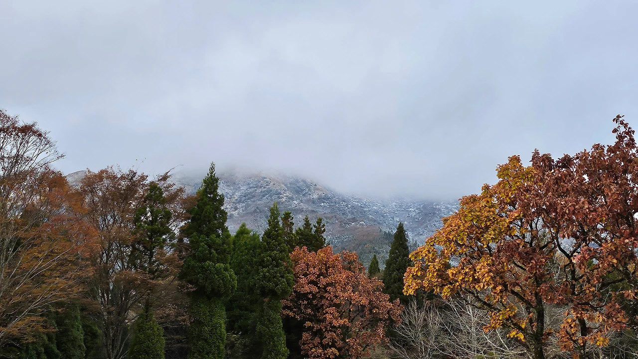 억새를 배경으로 겨울 눈도 보이고, 가을 단풍도 보이는 절경이었다.