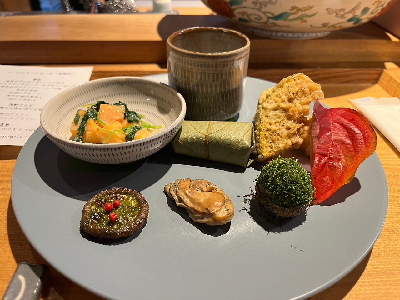 유후인 가는 길에 있었던 고급 가정집 같은 일식집에서 정갈하게 토란요리가 나왔는데 정말 맛이 있었다.