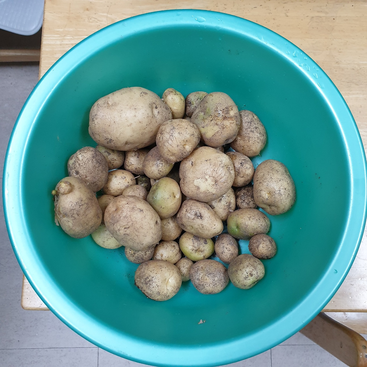 감자는 저마다 크기도 다르고 겉면의 색이 다르지만 분명 예쁜 감자다. 아이들이 수확해 온 감자를 조리사님께 가져다주고 이것으로 무엇을 해야 할지 물었더니 “그러게요……. 감자채 볶음을 할까요? 양이 좀 부족하기는 한데, 생각해 볼게요.”라고 한다.